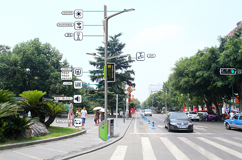 本次雙流棠湖西路一段項目中,華體公司共安裝19柱智慧路燈,其中包含3柱多功能智慧路燈。根據(jù)項目實際需求,本次智慧路燈試點工作中加載了新能源汽車充電、便民信息觸控屏、USB充電、視頻監(jiān)控、環(huán)境信息查詢、井蓋監(jiān)測、停車管理及公共信息發(fā)布功能。后期將根據(jù)應(yīng)用需求,擴展加載如城市應(yīng)急廣播、電動汽車分時租賃等功能。