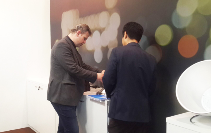展會上,華體照明公司還受到華沙當(dāng)?shù)刂髁髅襟w的特別關(guān)注。Eletronika Praktyczna雜志主編Marcin Karbowniczek先生被華體照明公司簡潔而明亮的展場風(fēng)格所吸引,首席技術(shù)官王銘宇詳細(xì)介紹了公司產(chǎn)品,包括智慧公交站臺、智慧路燈、智能控制系統(tǒng)等。Marcin Karbowniczek先生表示,像華體照明這樣的中國企業(yè)是非常值得他們向波蘭的企業(yè)介紹,他們將作為橋梁和紐帶,連接中波兩國企業(yè)的進(jìn)一步合作。